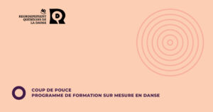 Grâce à un partenariat avec le Regroupement québécois de la danse (RQD), les participants auront accès au Programme Coup de Pouce Montérégie – Programme de formation sur mesure du RQD....