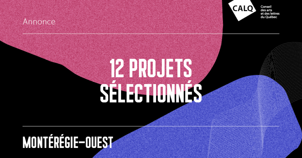 Le Conseil des arts et des lettres du Québec, le ministère des Affaires municipales et de l’Habitation (MAMH), les Municipalités régionales de comté (MRC) de Beauharnois-Salaberry, du Haut-Saint-Laurent, des Jardins-de-Napierville, de Roussillon, de Vaudreuil-Soulanges*, la Table de concertation régionale de la Montérégie, en collaboration avec Culture Montérégie, sont heureux d’annoncer un soutien de 202 000 $ à dix artistes et deux organismes artistiques professionnels dans le cadre du Programme de partenariat territorial de la Montérégie-Ouest.